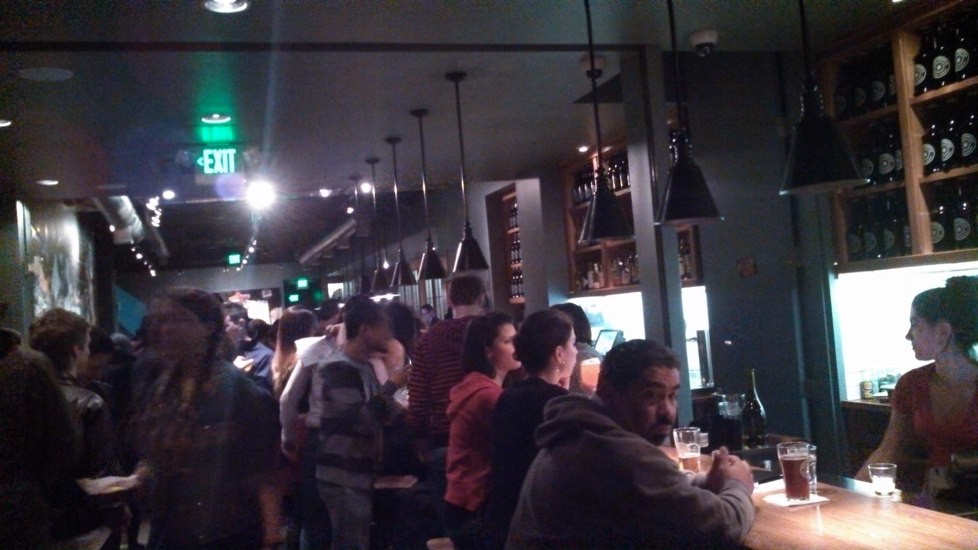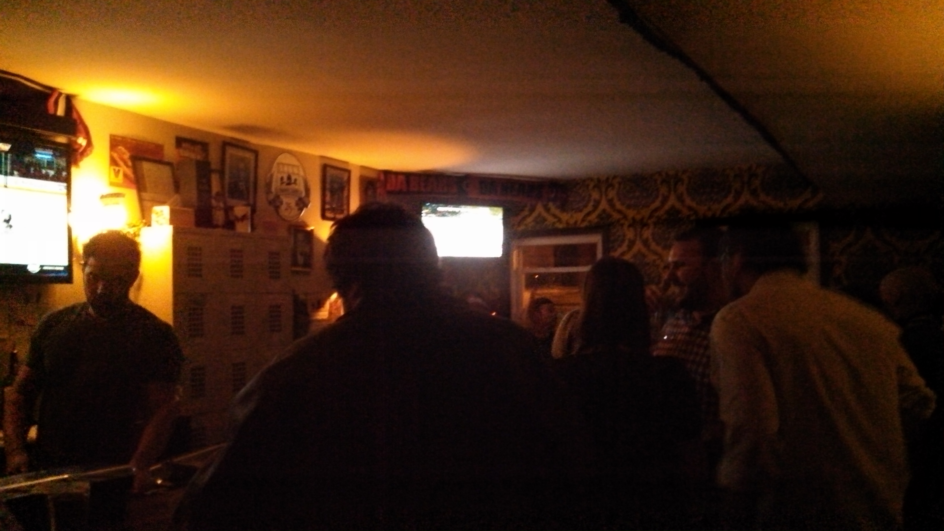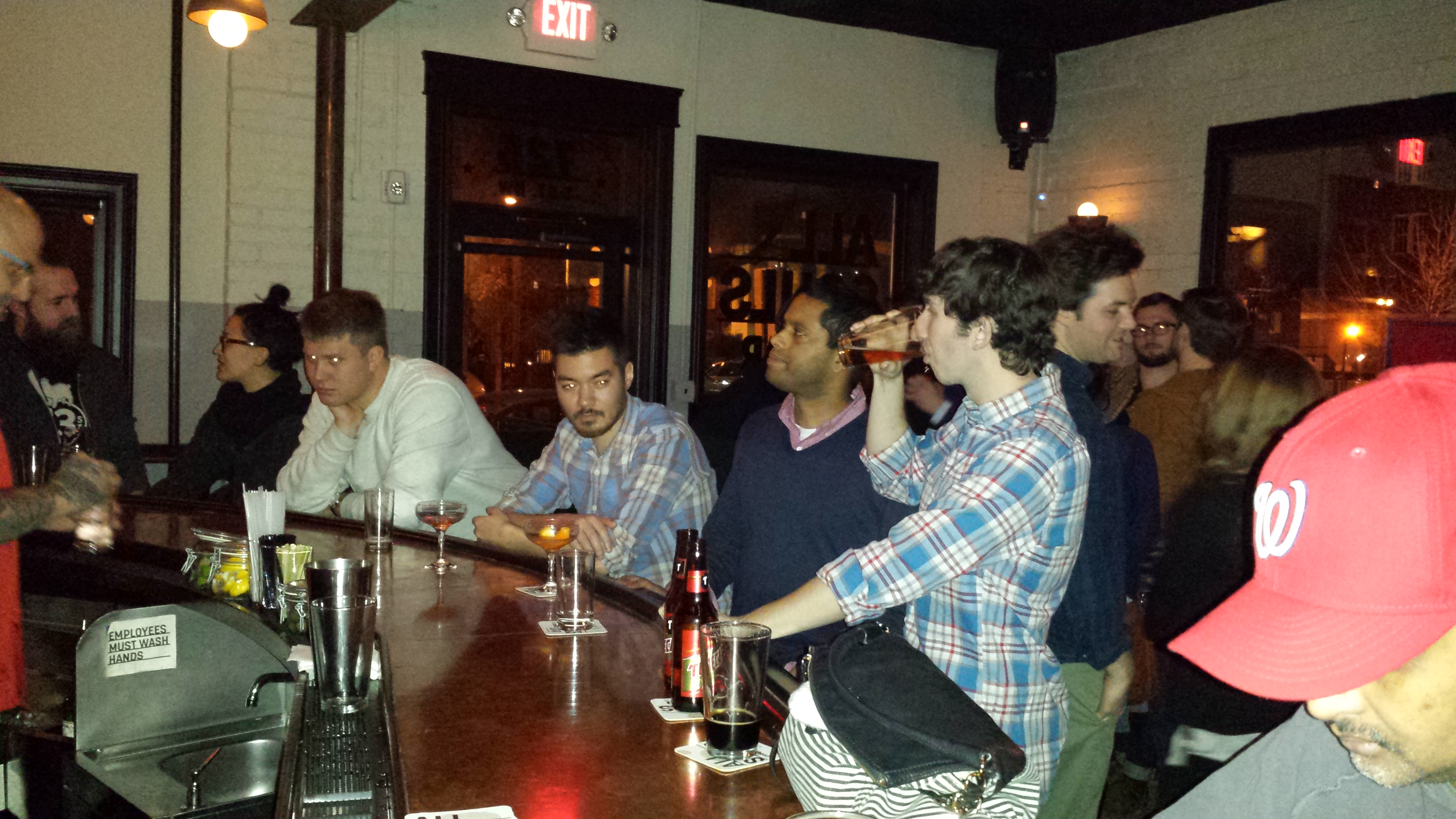 First stop was Ivy and Coney, a new cash-only neighborhood dive from the Kangaroo Boxing Club owners at 7th and Q. This second-floor walk-up is tiny, not much bigger than my 650 square foot condo. The Chicago/Detroit theme is pervasive, with fake autographed pictures, murals and the limited drink/food menu styled as a Wrigley Field scoreboard. I was excited to order a Vernor’s Ginger Soda (popular in Michigan, where I went to law school) and gin (a “Vergin”); I was given a bottle of Vernor’s to mix with a glass of gin-definitely worth trying out if you haven’t before. I also sampled a shot of Malort, much to the surprise of several of the friendly people sitting at the bar (“You’re so brave”). Verdict: not so bad, especially if you like absinthe;ask for a chaser of ginger ale. The selection of beer includes a few cheap $3 cans (e.g Stroh’s) and a few $6 drafts (Bell’s Two Hearted); all liquor is $6 (limited selection of liquor can be seen behind the bar). You can also grab a Chicago or Coney hot dog if you’re hungry. Despite the cash-only policy, some bargoers were taking advantage of an old-school bar tab policy; leave your driver’s license with the bartender and you can run a tab to settle up at the end of the night. Be sure to check out the cozy back room; another TV with an Nintendo can be found here. Although some of the Shrawlers weren’t a huge fan of the limited selection, cash-only policy and crowded scene, I hope to check it out again on a less-crowded weeknight or for a Chicago or Michigan sports event in the future.