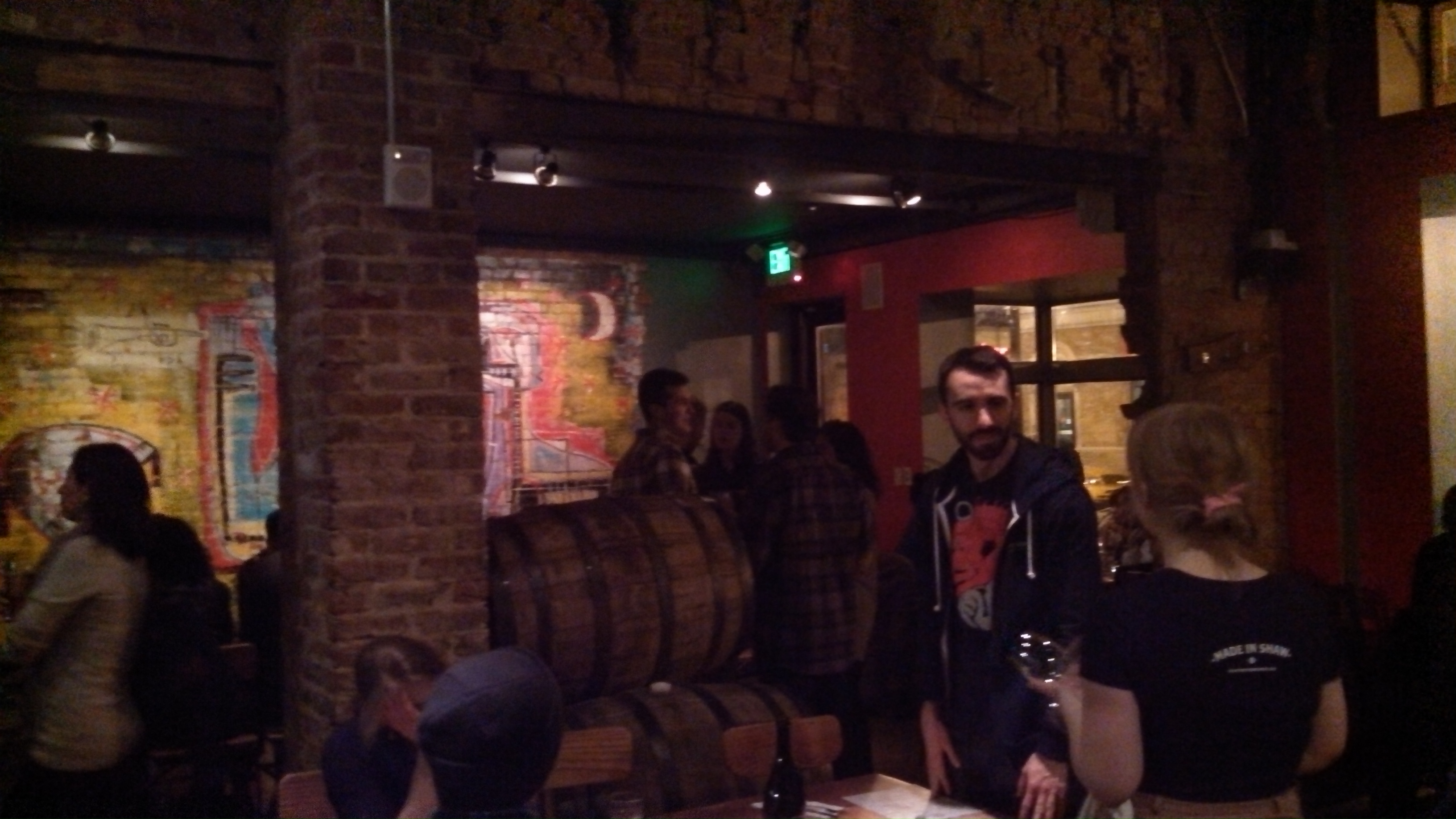 We then proceeded around the corner on T Street to the third stop of the Shrawl-Right Proper Brewing Company. Quite a departure from the first two spots, Right Proper occupies an expansive space with multiple bars. Well-priced ($4-6) beers made in-house can be had here; I tried The Duke and a honey beer (The Bees Made Honey In The Lion’s Skull) that were both very good. We also sampled some onion strings; I’ve heard the fried chicken sandwich is also worth having. The reaction from the Shrawlers was fairly divided; everyone enjoyed the beer (even those non-beer fans among us), but some thought the place was too sprawling and somewhat antiseptic while others (like myself) felt Right Proper nailed the brewpub concept quite well. One tip-Right Proper was still buzzing when we left around 12:30, with no signs of closing down, well past the midnight posted closing time, so feel free to come late.