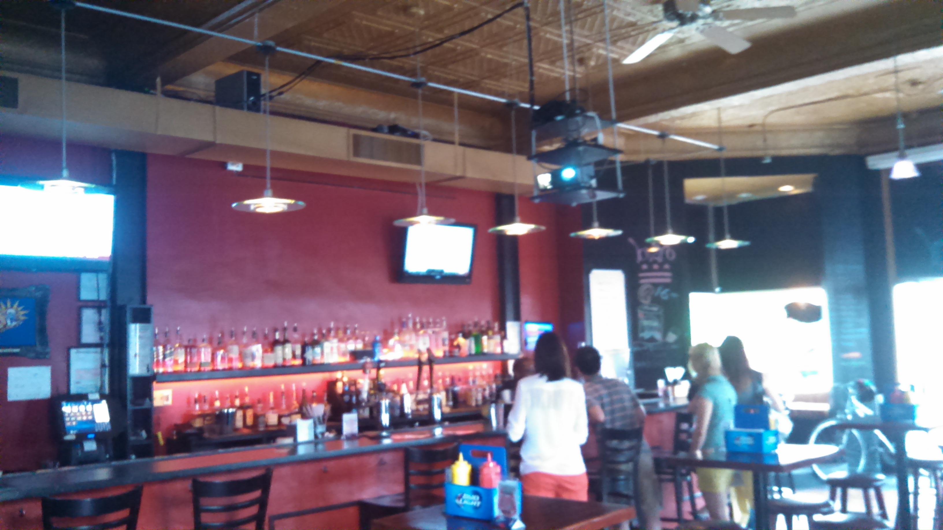 Next we took yet another 79 bus several stops to Bravo Bar, a new neighborhood spot in the eastern edge of Columbia Heights (area known as Pleasant Plains) with little online presence so we had no idea to what to expect. We found a spacious-feeling dive with a solid side patio located in an old pharmacy with awesome specials: BOGO (buy-one-get-one-free) drafts & rails from 5-8p for HH everyday, 1/2 off wings & pupusas ($2 for big order), and an all-night $6 special consisting of a PBR, shot of Beam and a hot dog. We also got to meet one of the brothers who own the joint, as he happily served us while we were there at the bar.
