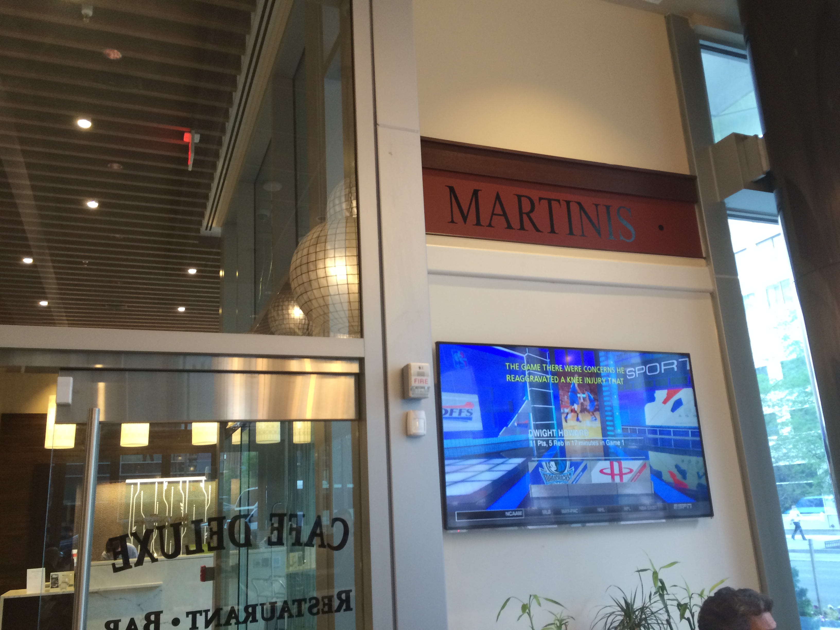 Blue Lemonade & GT 500 cocktailsCucumber MartiniAside from the burgers, Cafe Deluxe’s cocktails were a surprising highlight of the evening. The $10 Blue Lemonade cocktail, with house-infused lemon vodka, lemon juice, and blueberries captured the essence of summertime lemonade with a crisp tartness, along with fruity secrets, while the $10 GT 500 was a fresh gin and tonic/club soda combo. The $12 Cucumber Martini topped with a twist of cracked pepper is summer must. Elderflower liqueur aficionados and not-such-big fans will be pleased. Enjoy on a summer day-make sure it’s hot as the cucumber will work better that way; sit near one of the big picture windows that open to the fresh summer breeze and let this balanced cocktail get you in the groove. A solid list of beers also go well with the burgers-I had a Reviver Red IPA from Starr Hill. Happy hour is on deck weekdays from 3:30-7p at the bar with $4-6 bar bites and $4 Stella Artois drafts & house wine, $5 rocks margarita & a Cosmopolitan, and $1 off all drafts.