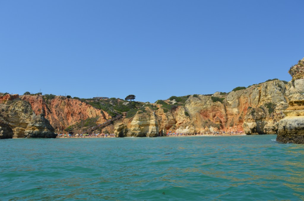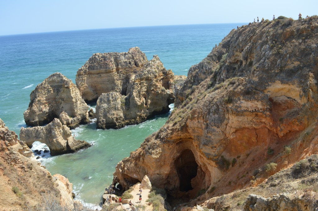 The real reason to goto Lagos is check out the beautiful cliff-laden beaches within a mile or two south of town. It’s walkable, but we took a 7 euro taxi to Ponta da Piedade. From there, we walked down a couple hundred steps to a gorgeous area on the water with crazy rocks and waves. From there, we walked 10 minutes back towards town to a ridiculous scenic beach-Praia do Camilo (there are a couple more around that we didn’t make it to) A couple beautiful beaches are right next to the city center and also recommended (though crowded)-Praia da Batata and Praia dos Estudiantes. All the beaches have walkways through rock formations-really cool. We also took a 20 euro 75 minute boat ride along and through some of the grottos/caves that are off the coast; it was pretty hairy due to the waves but unforgettable (just walk along the promenade and book something near the marina (we used Bom Dia, which was great)