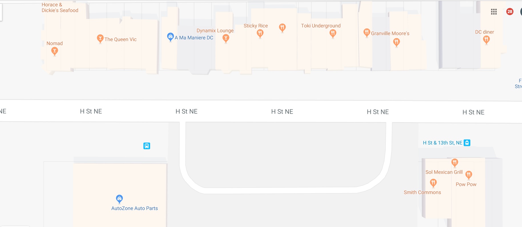 After a series of Twitter polls stretching over a week, the 1200 Block of H Street NE (between 12th and 13th) has been crowned DC’s favorite block to drink on. In a poll open for 3 days, the 1200 block avenged its first round loss to the 1300 block (which was previously undefeated in 3 poll rounds) to eek out a 53%-47% victory. This is despite fact that nearly half the block is occupied by an AutoZone and its parking lot. Bars/spots to drink include: Nomad Hookah, The Queen Vic, Dynamix Lounge, Sticky Rice (and the SingSing Karaoke Palace), Toki Underground (though hard to drop in and get a drink), The Pug, Granville Moore’s, On the Rocks (all on north side of street, west to east); and in southeast corner, Smith Commons and Sol (upstairs cantina to reopen in spring).
