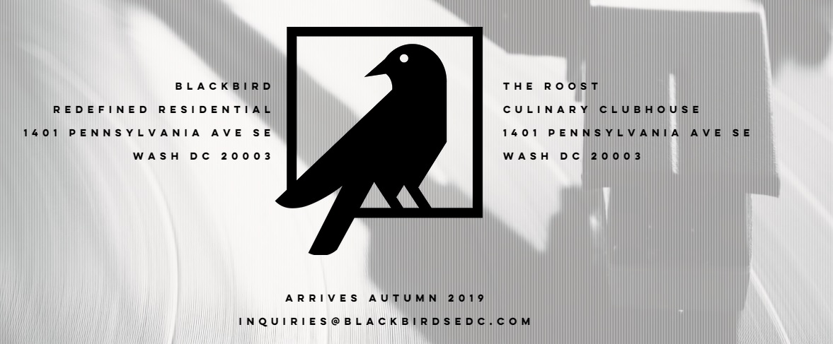 The Don’t-Call-It-A-Mini-Union-Market-Or-Food-Hall multi-concept establishment coming to Hill East from the Neighborhood Restaurant Group later this year or in 2020 across from the Potomac Ave. Metro apparently has its name: The Roost. This name appeared on the website (see above, but who knows if it will be taken down after this post) for the building in which it will be located at 1401 Pennsylvania Ave. SE, Blackbird (DCist or PoPville commenters will have a field day with the quotes and imagery being used to advertise the 170-apartment mixed used development; these quotes also front the building during construction).