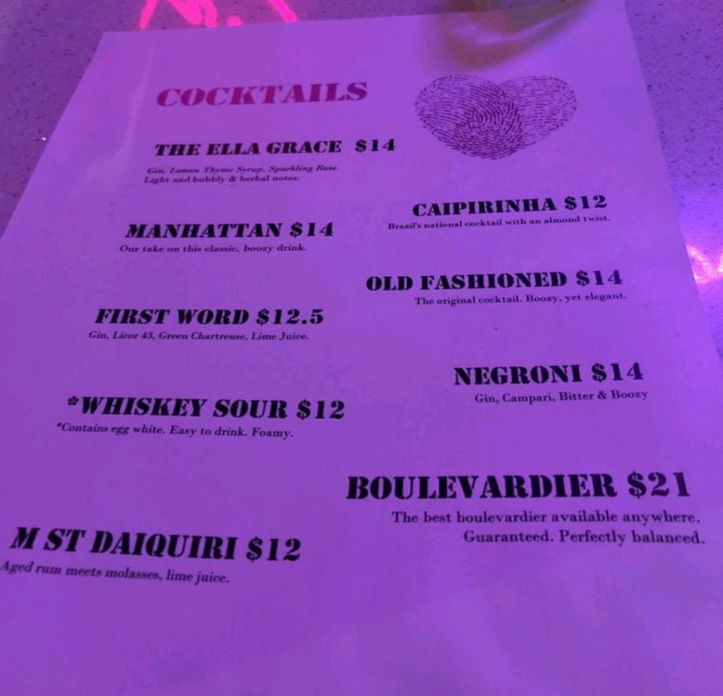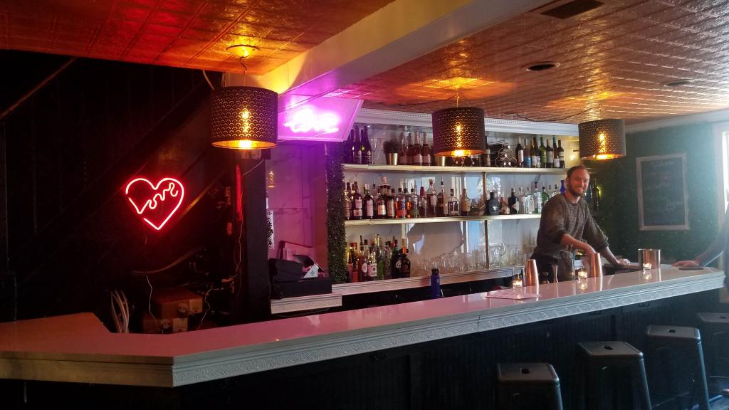 The Ella Grace, 1825 M St. NW, Facebook, Instagram, opens around 3p, has opened in lower Dupont inside the legendary dance/meat market bar, The Sign of the Whale. This new cocktail/wine bar is located on the second floor alcove in the front of the establishment, and overlooks the rest of the spot. The cozy bar within a bar first soft opened around March 8th, and has been having grand opening specials (including free cheese plates this weekend) since around March 20th through April 1st. Barred in DC did a quick stop by (didn’t sample any drinks) and found a chill atmosphere, decor clearly designed for Instagram shots, and a streamlined cocktail menu averaging around $14 (including a $21 Boulevardier didn’t see any wine lists, but didn’t ask). The signature cocktail, the Ella Grace, is gin-based, with thyme syrup, and sparkling rose.