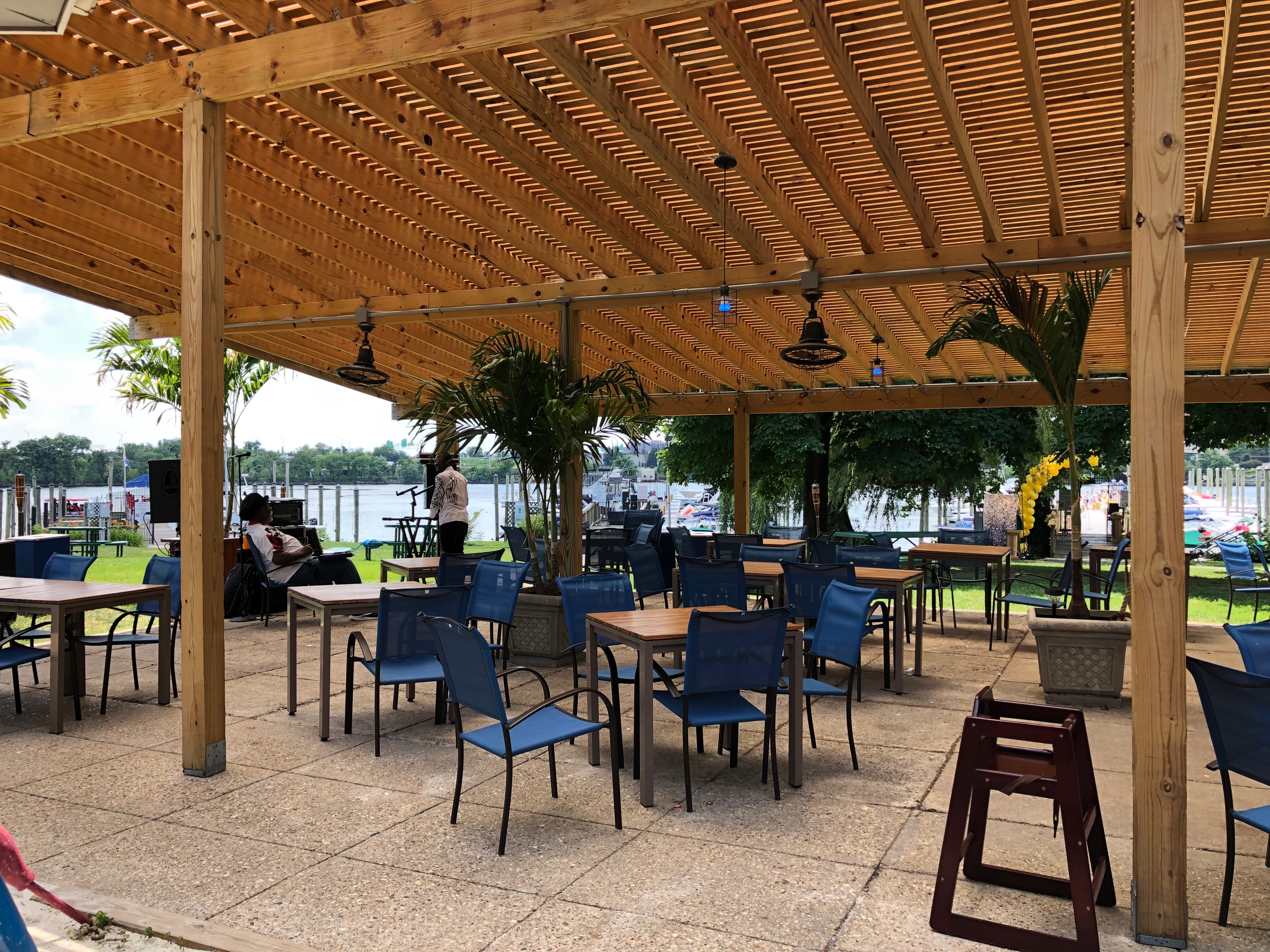 Also on this island is the LBJ Memorial Grove as well as the Columbia Island Marina overlooking the Pentagon Lagoon. Part of this marina is one of the more chill and somewhat unknown bars in DC, Island Time Bar and Grill. This seasonal outdoor spot is open from mid-April to late September and, during the Memorial Day – Labor Day period, Noon-7p Wednesday-Sunday (closed Mon-Tuesday). An outdoor bar with a friendly bartender is covered, as is a large patio. Live music is played every week (usually Saturday late afternoons). Drinks include $8 crushes (my Grapefruit Crush was made with Deep Eddy Ruby Red vodka and fresh squeezed fruit) and cocktails, several beers (including a few on draft), and $7 wines. Food is pretty standard fare; I hear the $16 crabcake sandwich is solid. Clientele is a mix of younger couples, cyclists taking a break, and older folks about to get on their boats.