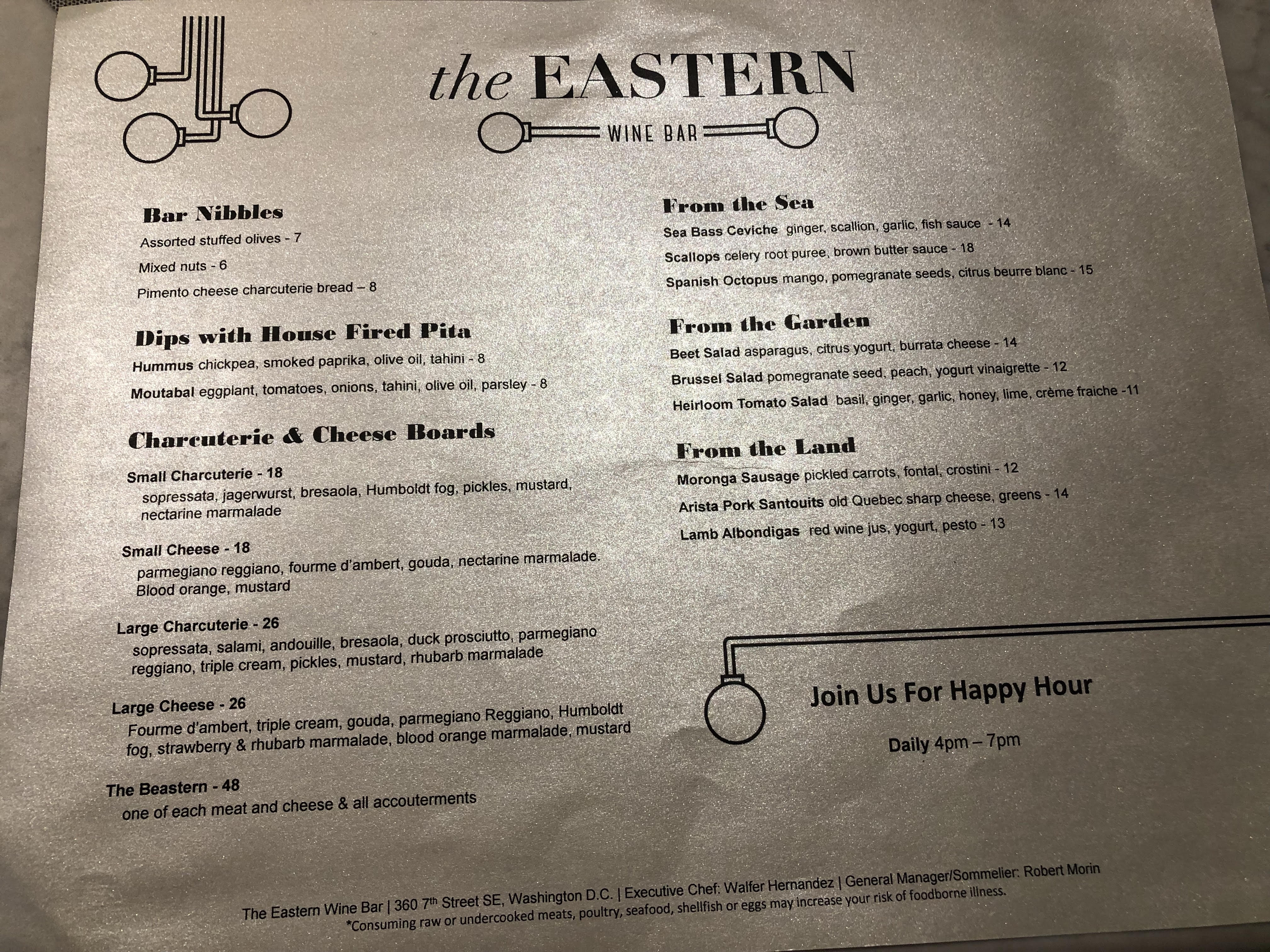 The Eastern, 360 7th St. SE (b/t C & Penn SE), open at 4p daily, HH 4-7p M-F, Facebook, Twitter, Instagram. The Eastern, an eagerly awaited wine bar around 450 feet from the Eastern Market Metro station, opens Tuesday, July 30th in the 700 Penn development. The cozy yet bright spot, which can fit around 50 inside and 20 outside, comes from Matt Weiss and Mike Schuster, who also co-own the whiskey/Southern food spot Barrel 800 feet away.