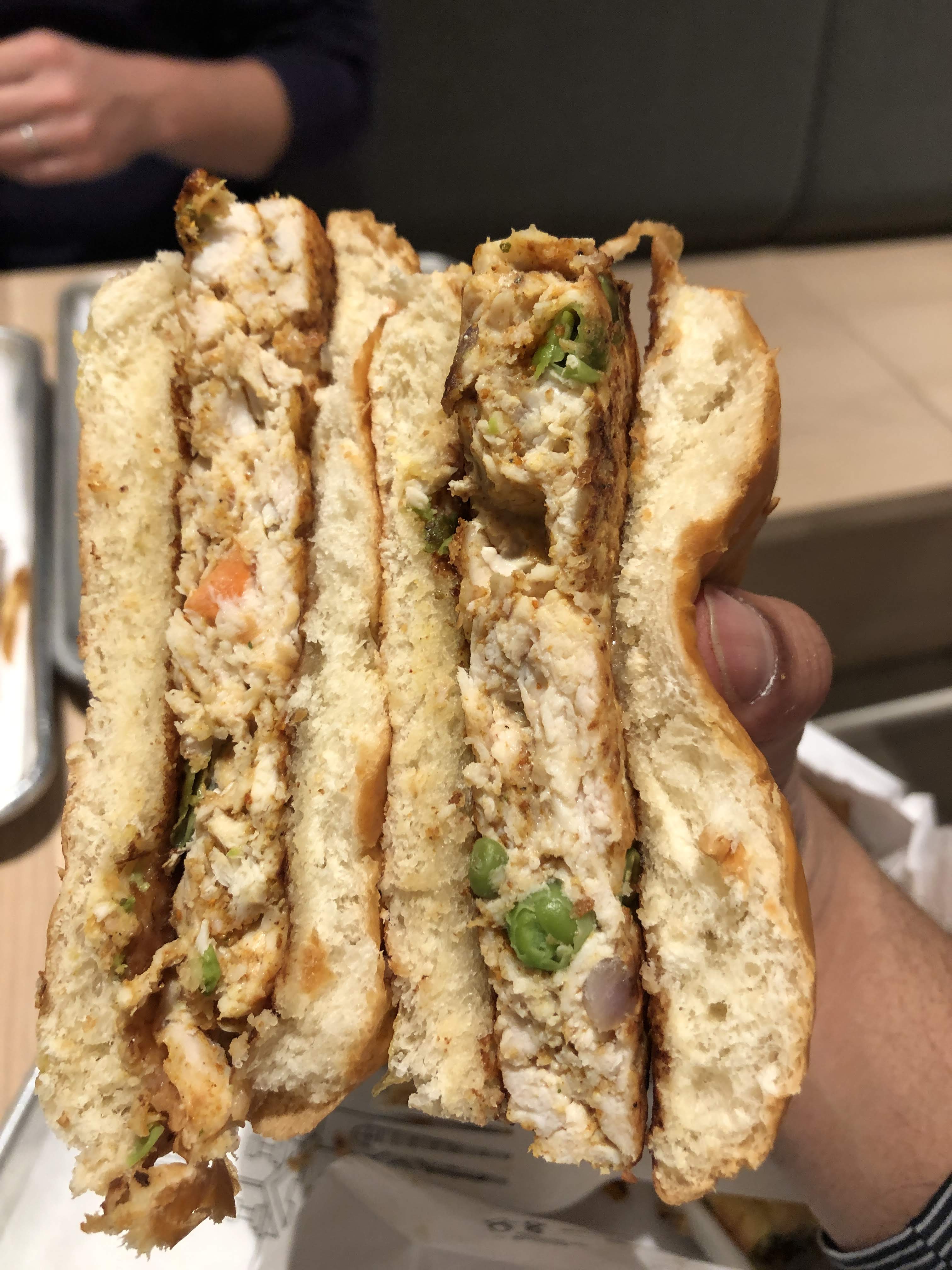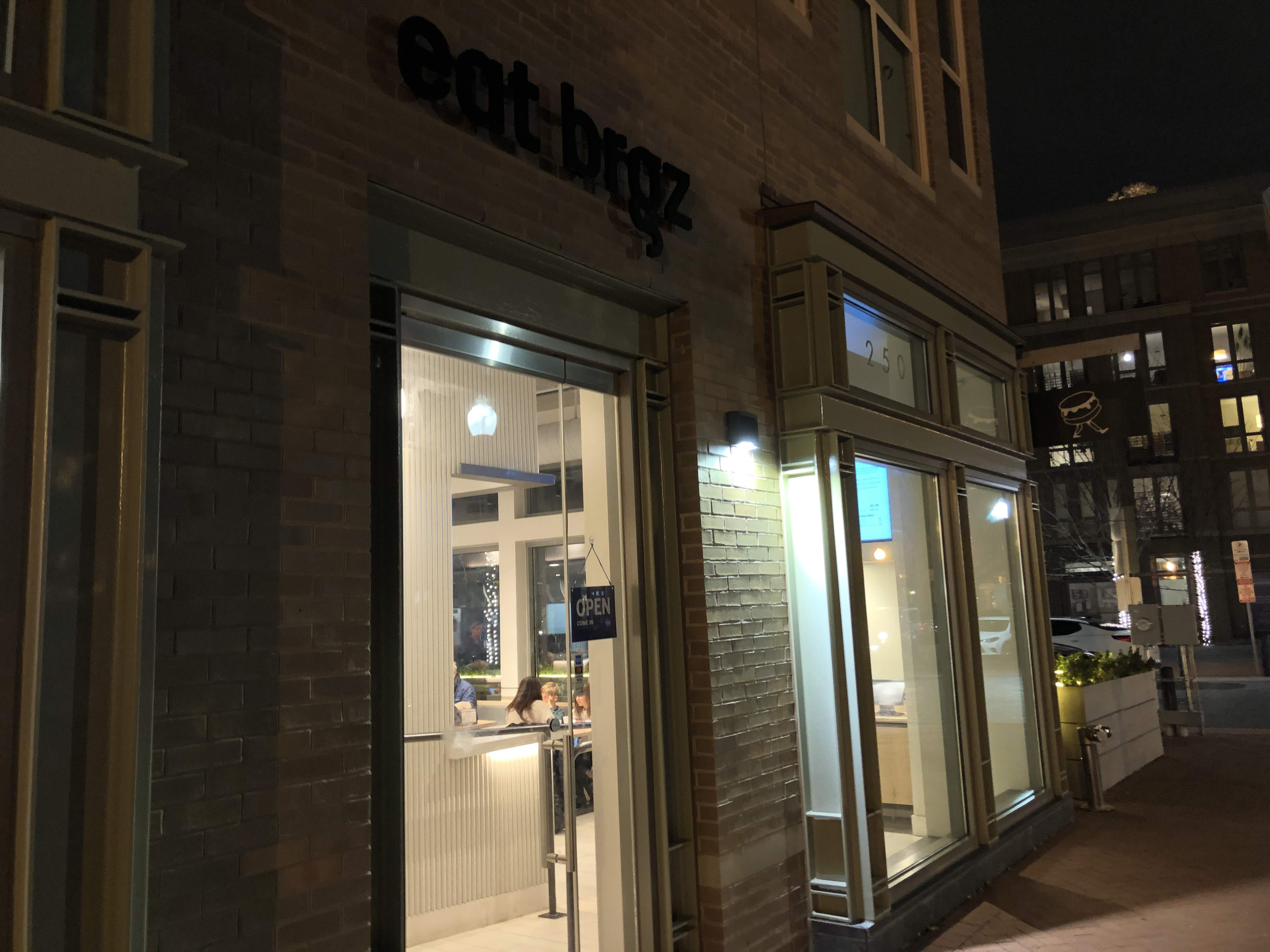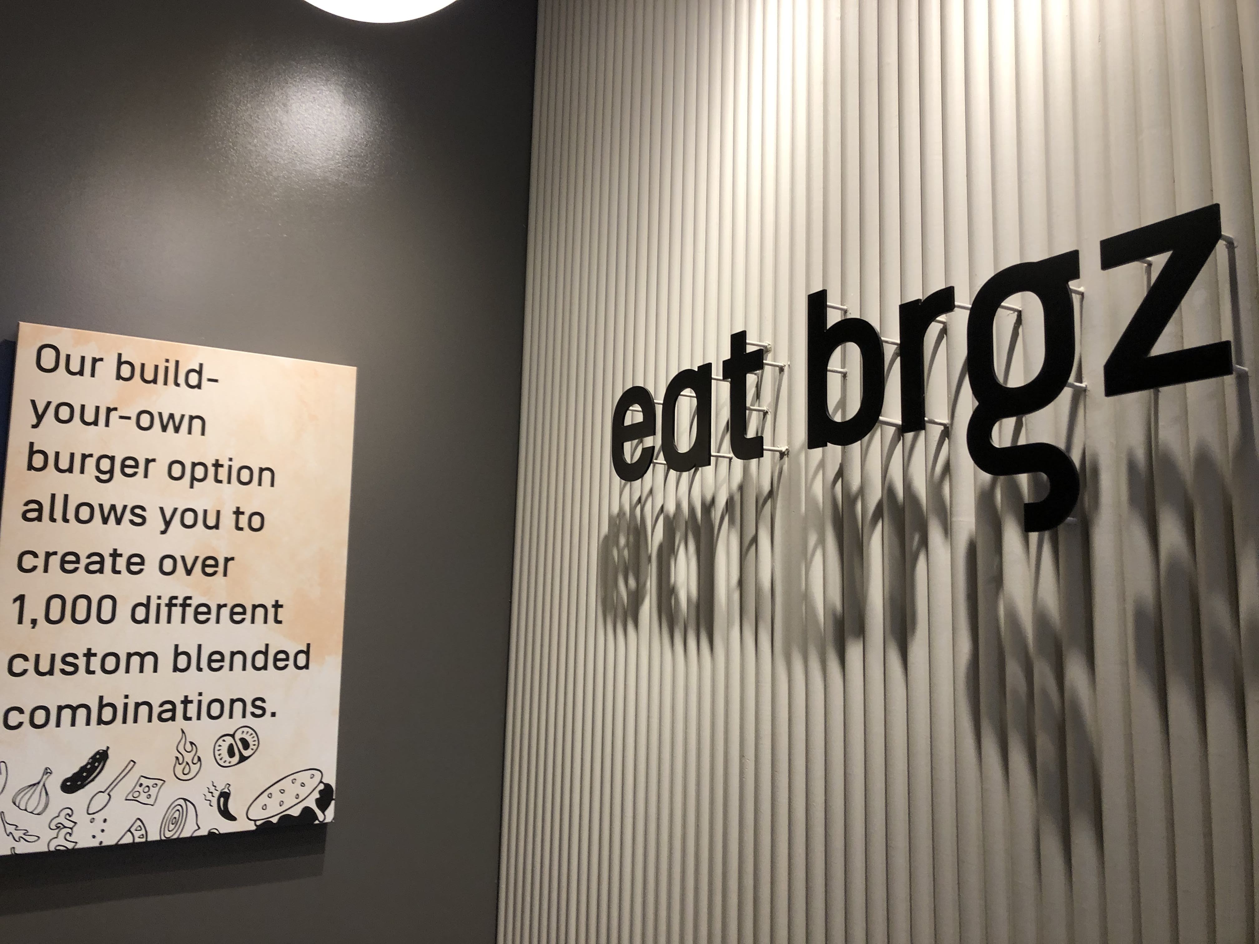 Incidentally, soon afterwards, I was invited by Brandon Gaynor, co-owner and founder of the spot, to sample some burgers. Brandon was in finance (particularly focused on restaurant industry) when he decided to start this spot, moving down from his career in NYC. This is definitely not a typical burger spot-instead of toppings abetween the bun and the meat, eat brgz mixes the toppings with the burger. The result is definitely tasty, though it certainly isn’t for everyone. I sampled one of each of the three types of burgers – beef (dry-aged, from Roseda Farms outside Baltimore), chicken (antibiotic-free), and Impossible plant-based versions (which is made on a dedicated grill for those vegetarians worried about cross-contamination); they each cost $9, except Impossible is $12. Once a protein is picked, you can pick one of eight “signature mix-in’s” or build your own. Brandon selected Mexico City (chorizo, red onions, bell pepper medley, jalepenos, oaxaca cheese, taco seasoning) for the beef, Memphis BBQ (sauteed mushrooms, carmelized onion, aged cheddar, bbq seasoning) for the Impossible, and Samosa for the chicken (carrots, green peas, red onions, bread crumbs, feta cheese, and kafta seasoning). Dipping sauces (queso, house bbq, and harissa yogurt respectively) also come with each burger; you can pour them over your burger or dip them, your choice. Burgers come on awesome potato buns from Lyon Bakery.