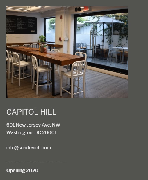 Per the website, the new location will open sometime in 2020. Sundevich originally opened in 2011 as one of Shaw’s first alley food and beverage spots; had a food truck for bit; had a short-lived location in Park View in 2017-2018; and opened a still-standing Georgetown location in 2016.