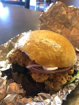 - Chicken sandwich: Greek yogurt marinated chicken thigh, comeback sauce, choice of toppings (LTO and pickles free)