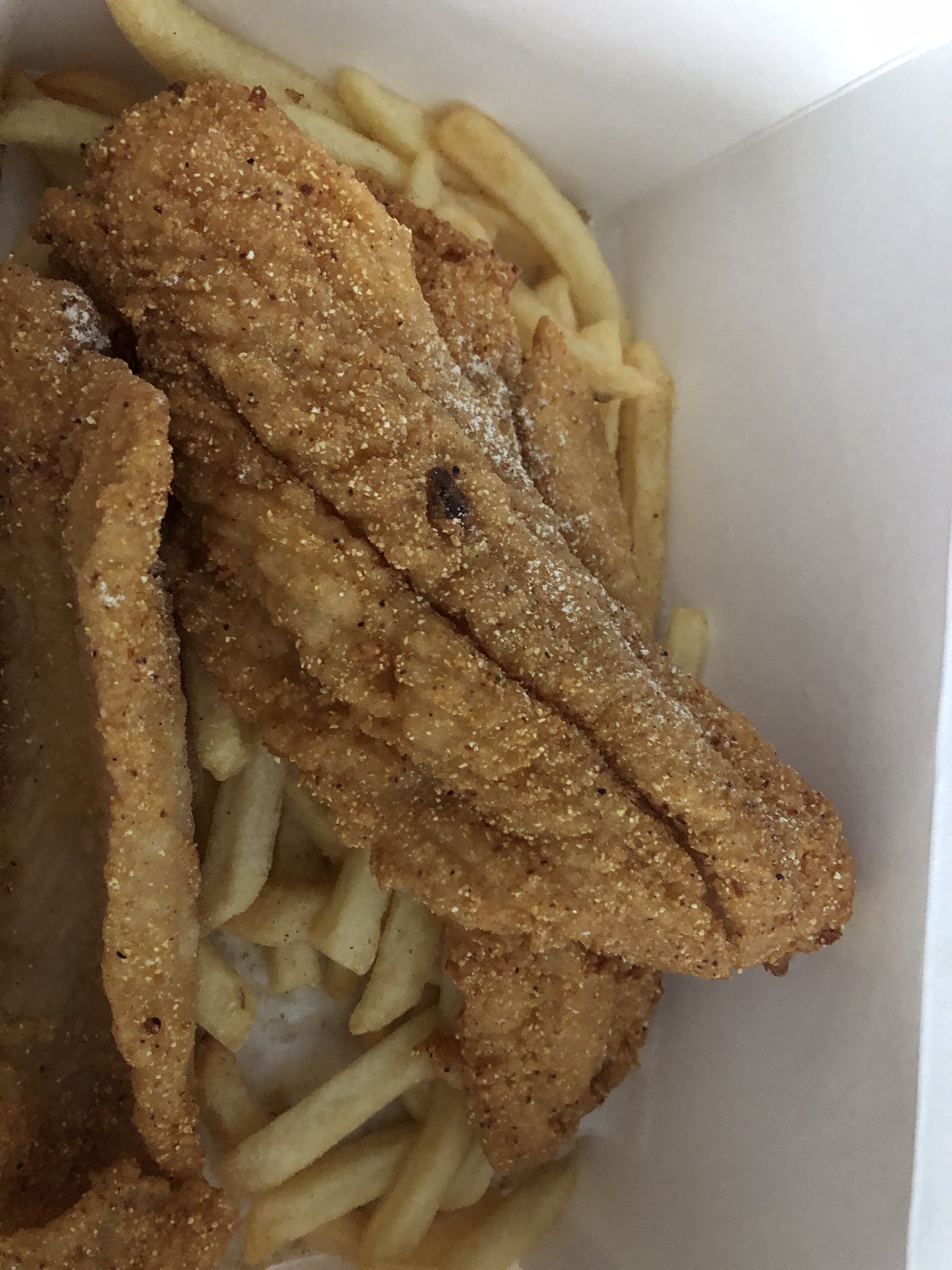 - Fried Whiting filets (dinners with sides, combos, boxes, and sandwich