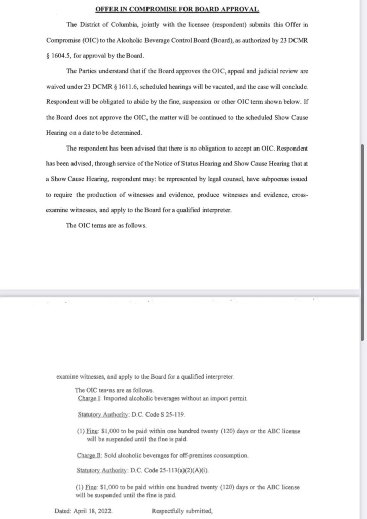 The DC Alcohol Beverage Control Board approved a settlement on Wednesday between the DC Government and the DC Fraternal Order of Police (FOP) following the Washington Post’s November 2021 triple-byline (including one Pulitzer Prize winner) investigative story that reported that the lodge bought, engraved with the FOP logo, and then resold 3,000 $80 bottles of Jack Daniel’s whiskey all across the country, all without a permit or really any legal permission from 2017-2020. The story is full of legal experts who are incredulous about the legality, and hints that FOP was in danger of losing their liquor license. In December, the Post reported that ABRA confirmed that the FOP indeed violated the law.
