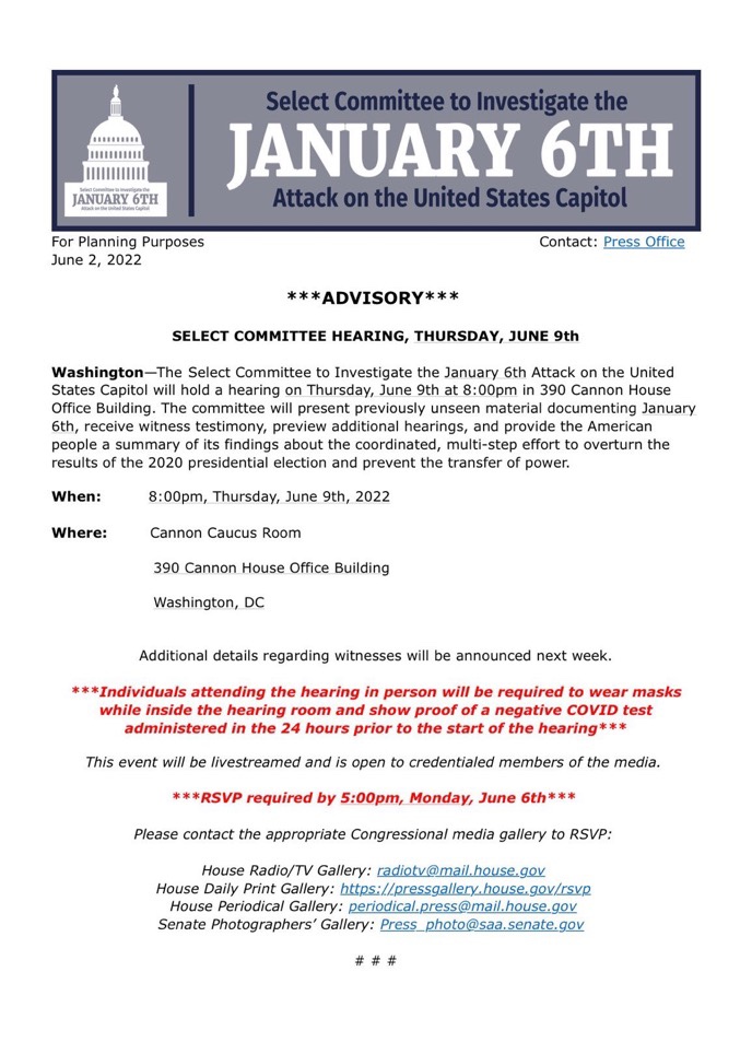 The U.S. House Select Committee to Investigate the January 6th Attack on the United States Capitol is having its first public hearing this Thursday, June 9th, at 8pm eastern time. All the broadcast networks you can get with a $15 antenna will show it and it will streamed live for free by the committee, but in true-one-particular-segment-of-DC fashion, many of you (1 out of 9) want to watch this with like-minded friends and strangers in public like it’s a sporting event or Jeopardy (despite it being a deadly and destructive day that is still traumatic to many).