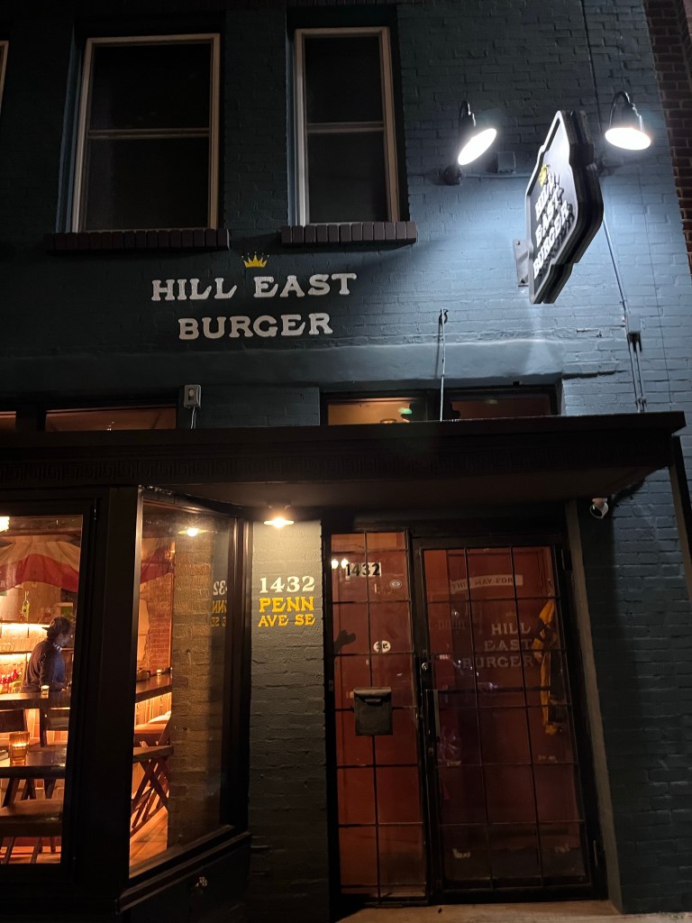 Hill East Burger [1432 Pennsylvania Ave SE, roughly 15th and I SE, Online Ordering, Twitter, Instagram, will be open 5p M-F, Noon Sat-Sun, kitchen closing at 10p daily, bar at 11p], a self-described “smoked burger saloon” quietly “soft” opened to the public Thursday, September 29th, and as of Friday October 7th, has booze though without booze for now. The spot, in the space that was previously occupied by Wisdom for a decade steps from the Potomac Ave. Metro, comes from the owners of Sloppy Mama’s (Joe Neuman) and Republic Cantina (Chris Svetlik) and opens one year after they signed a lease (which was advertised at a relatively affordable-for-DC-commercial-retail $4,800./month)