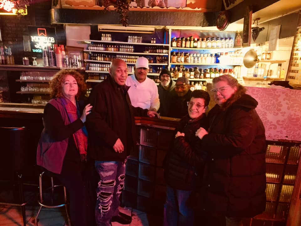 Dickie with his sons and 90s era customers, including Mary Mason (left) who provided photo and spoke at funeral, saying “one of the best things about Dans back in the day is that everyone there was family